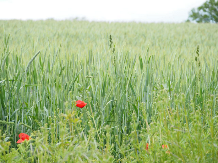 Nos productions végétales sont variées : fourrage des prairies et luzerne, maïs grain, pois, blé, orge, féverole, soja... Elles sont utilisées sur place pour la nourriture des volailles des bovins et des porcs après mouture ou concassage à la ferme avec notre propre moulin. Nous achetons localement (en Aveyron ou départements limitrophes) les céréales bio éventuellement manquantes par exemple en 2022 en raison de la météo.