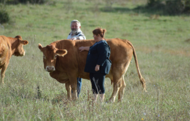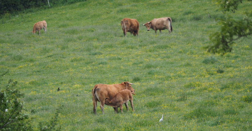 Le troupeau de bovins : constitué de vaches allaitantes de la race Aubrac et quelques Limousines, élevées au pré toute l'année avec leur veau. Une stabulation libre permet aussi leur mise à l'abri et l'engraissement. Les vaches sont, pour la plupart, nées sur l'exploitation et nourries exclusivement des productions végétales de la ferme.